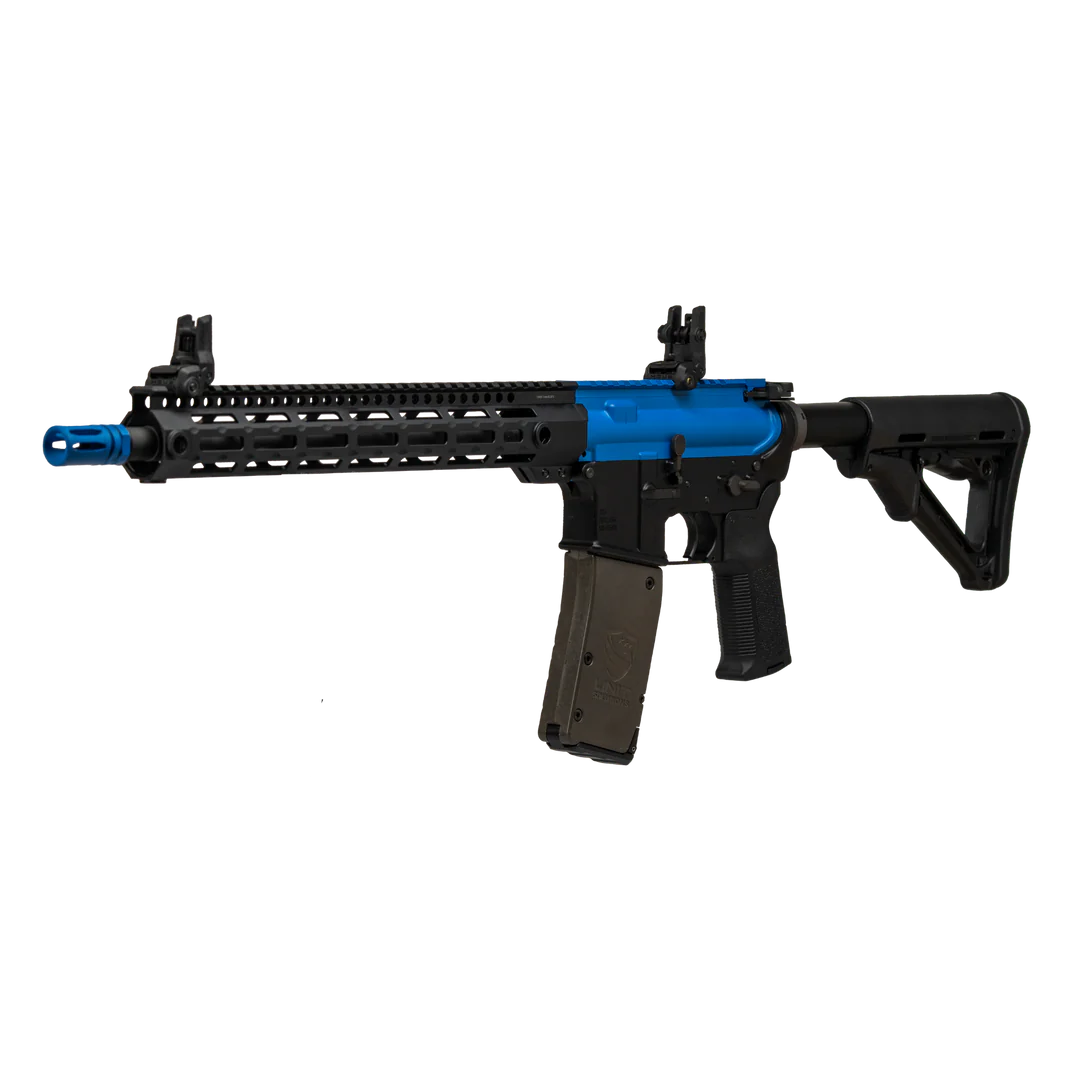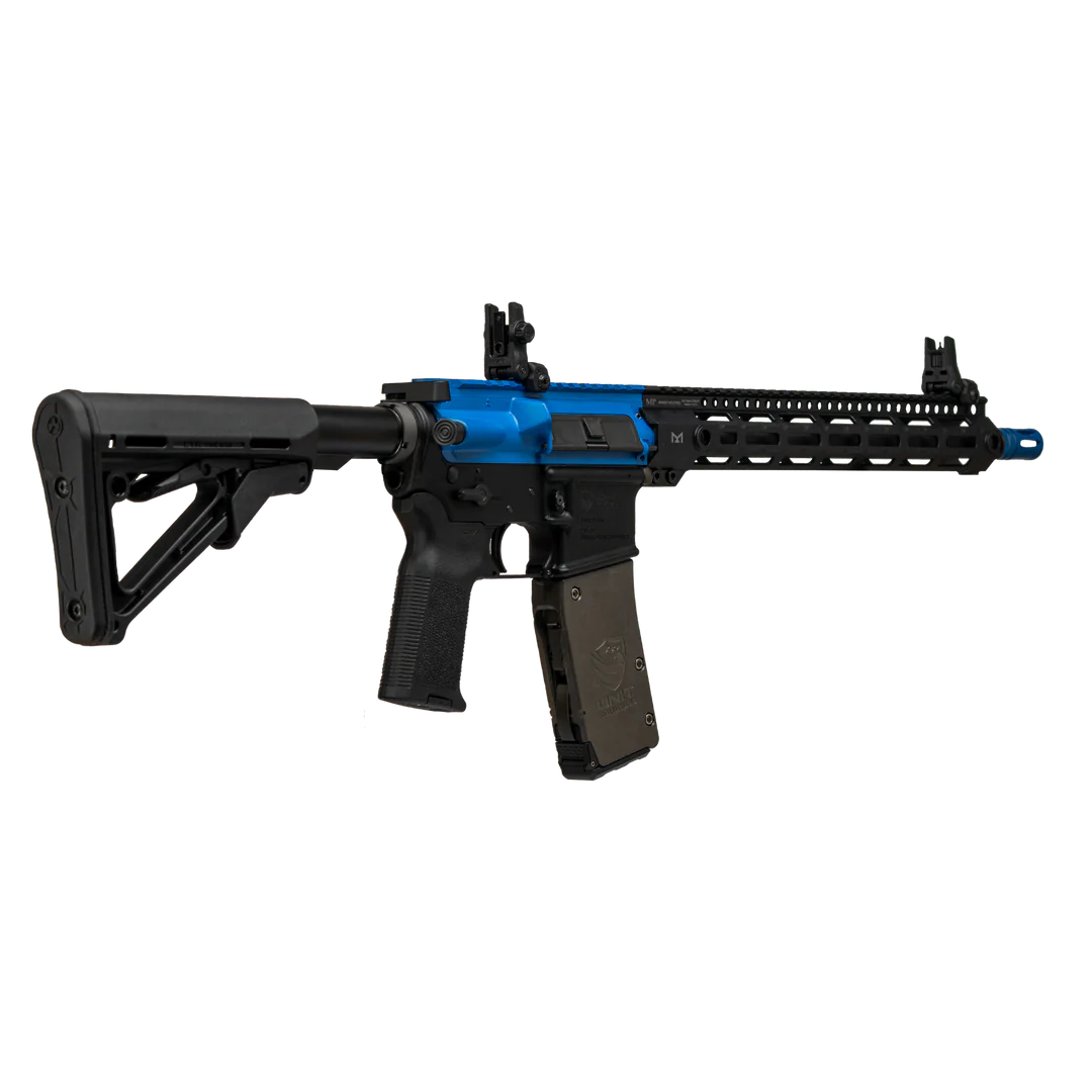 The MK14 V2 is equipped with a heavy-duty 14.5-inch outer barrel and a smooth bore inner barrel, providing a solid foundation for customizing your training setup. It comes standard with upgraded Magpul furniture and flip-up iron sights, enabling users to begin training immediately upon unboxing.