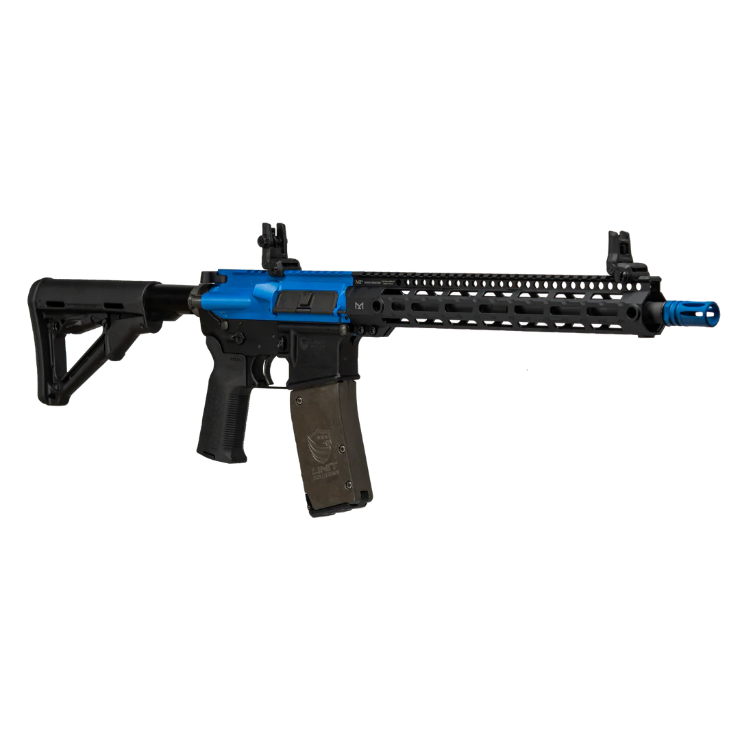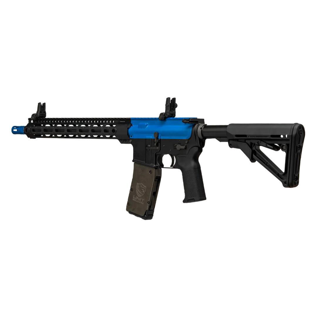 The UNIT4 MK14 V2 is an AR15-style training rifle that offers exceptional realism and performance for comprehensive firearms training. Constructed from durable aircraft-grade aluminum, it features a free-float barrel design and an uninterrupted upper rail platform with Mil-Spec 1913 and M-LOK attachment points along the handguard. Integral QD swivel attachment points on both sides enhance its versatility.